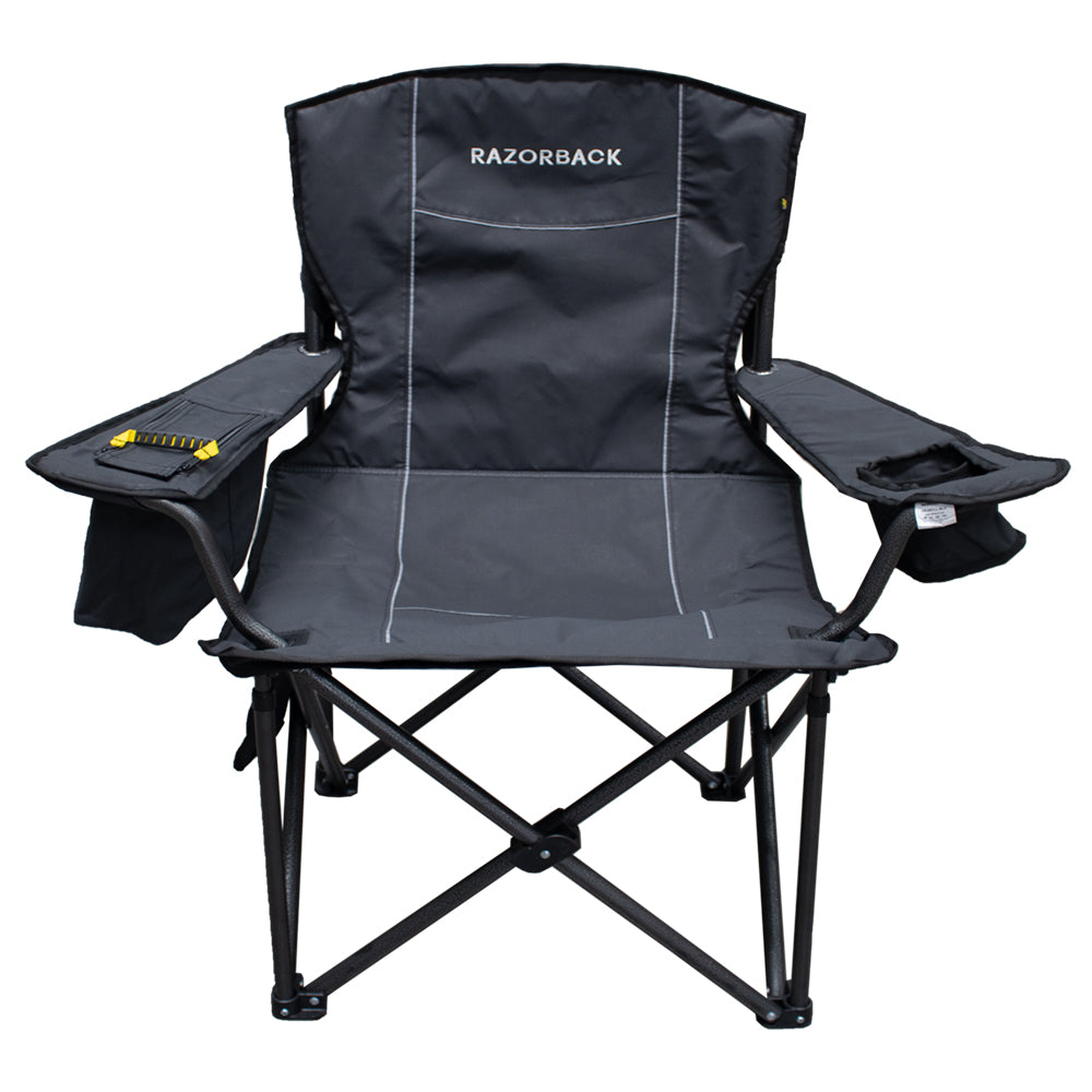 Our Aussie-tough Bush King Camp Chair is crafted from rugged 8oz canvas treated for fire retardancy, UV resistance, and mould prevention. Enjoy the outdoors in comfort with a padded seat and backrest, supported by a robust X-style frame for easy setup and pack-down. The heavy-duty galvanized steel frame, rated to 150kg, ensures stability.