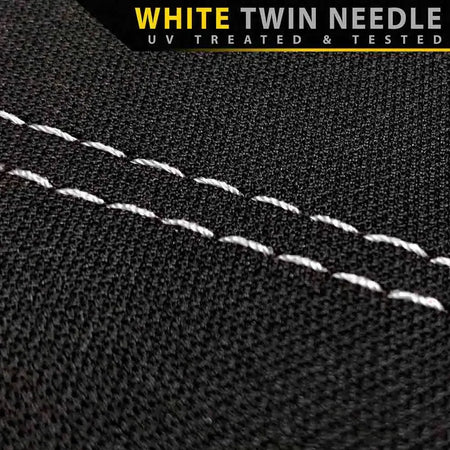 This product includes covers for both front bucket seats and headrests, featuring a full back design with map pockets.