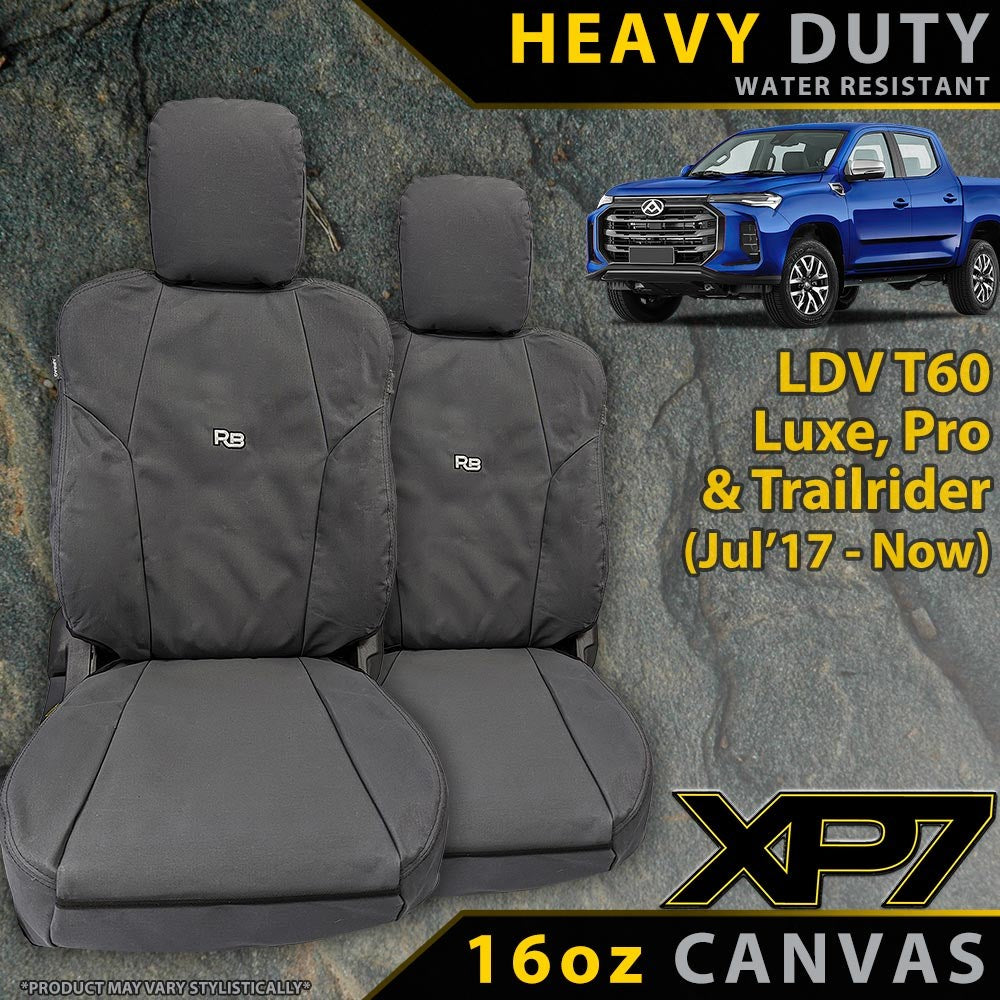 This product includes covers for both front bucket seats and headrests, featuring a full back design with map pockets.