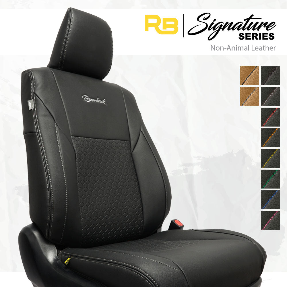 SIGNATURE SERIES Front Row Seat Covers - Toyota Hilux 8th Gen 48V V-Active (Leather Seats) - SR5 & Rogue (Made To Order)