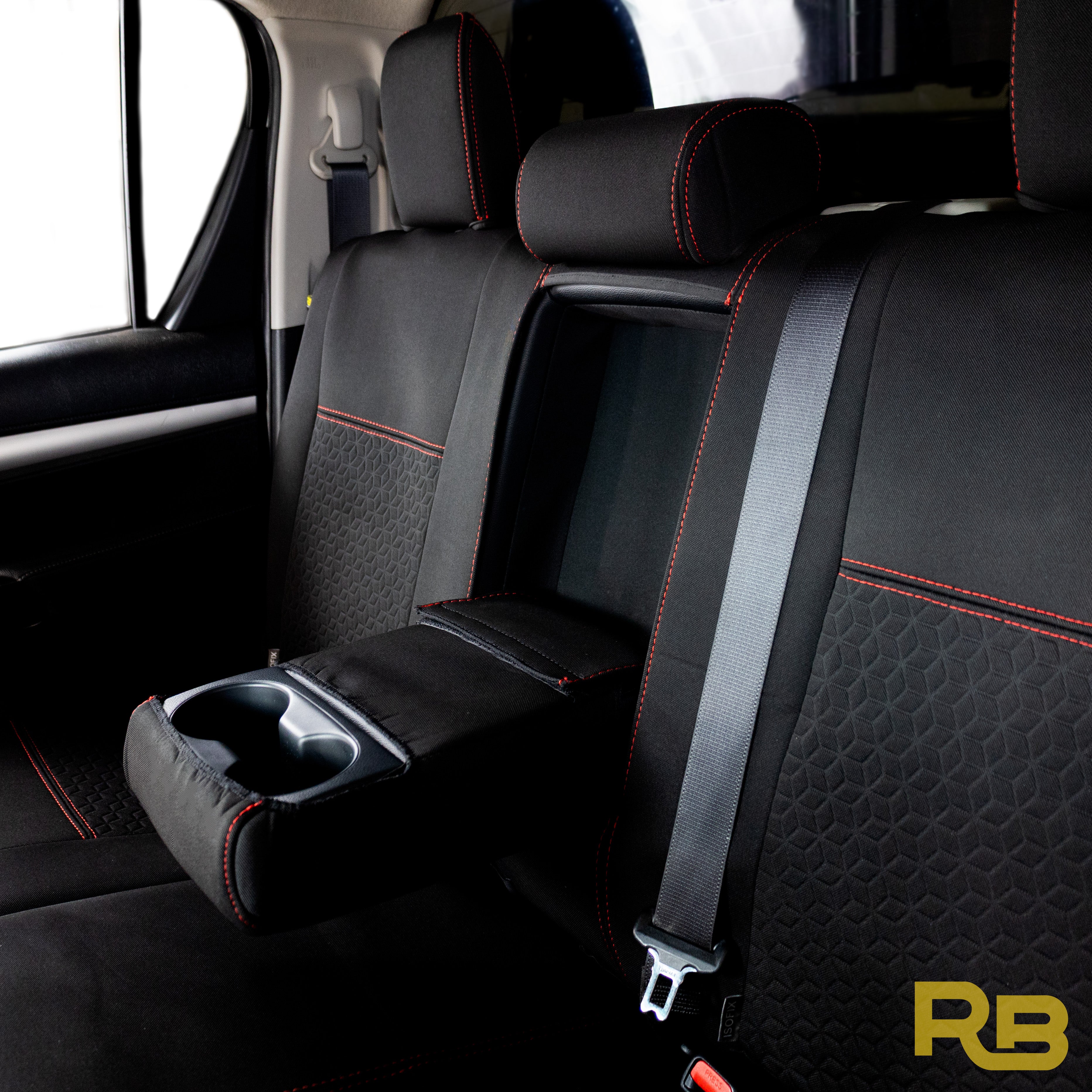 This product includes covers for 2nd row seats and headrests, with separate cover for centre armrest.